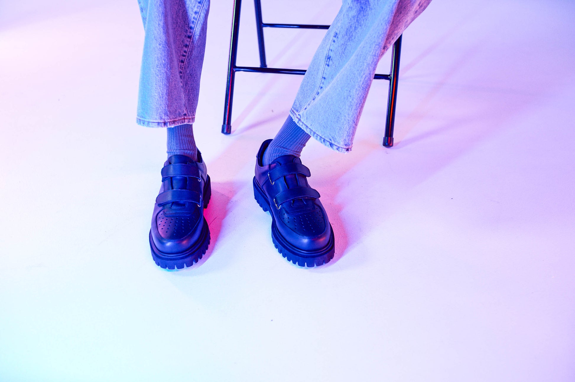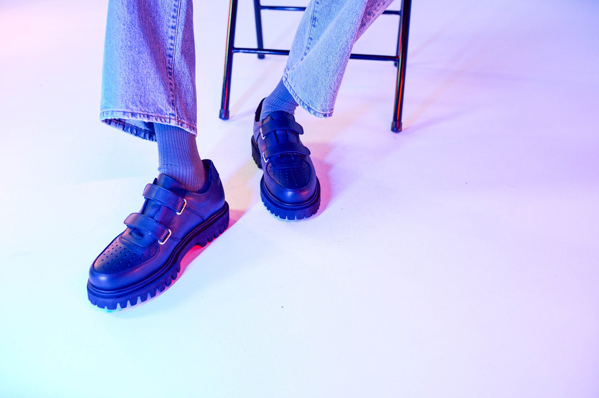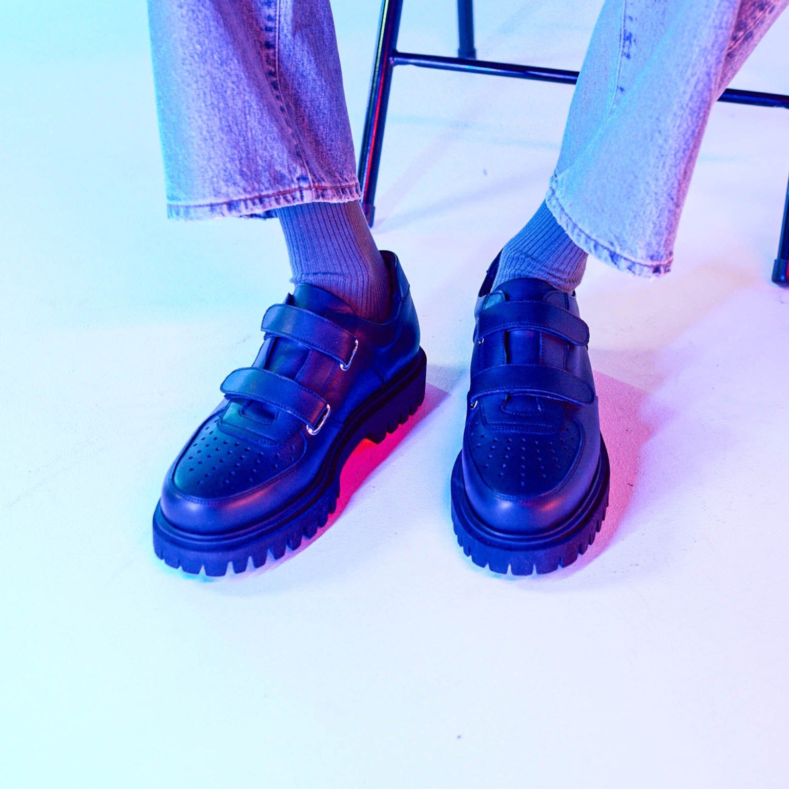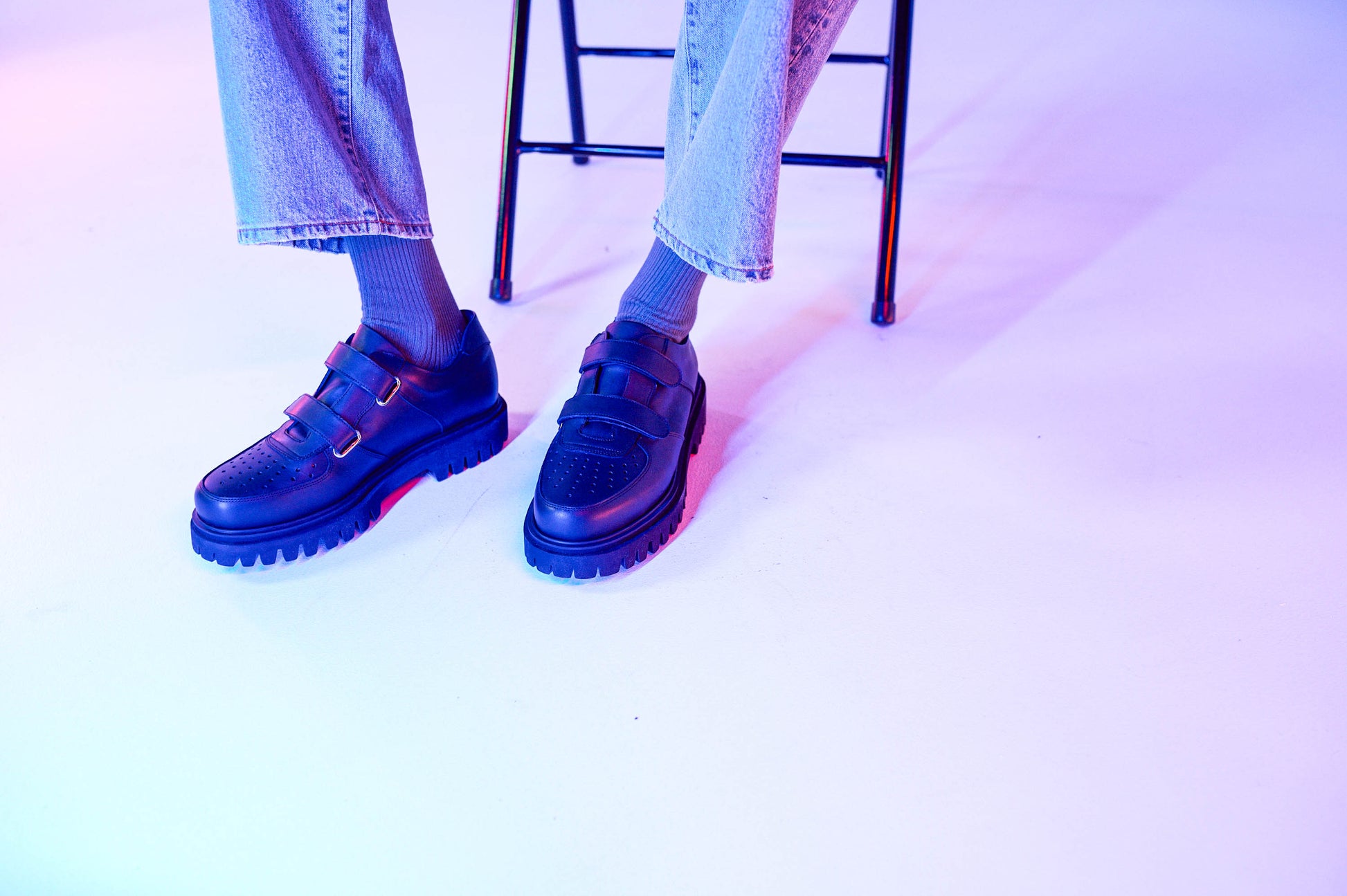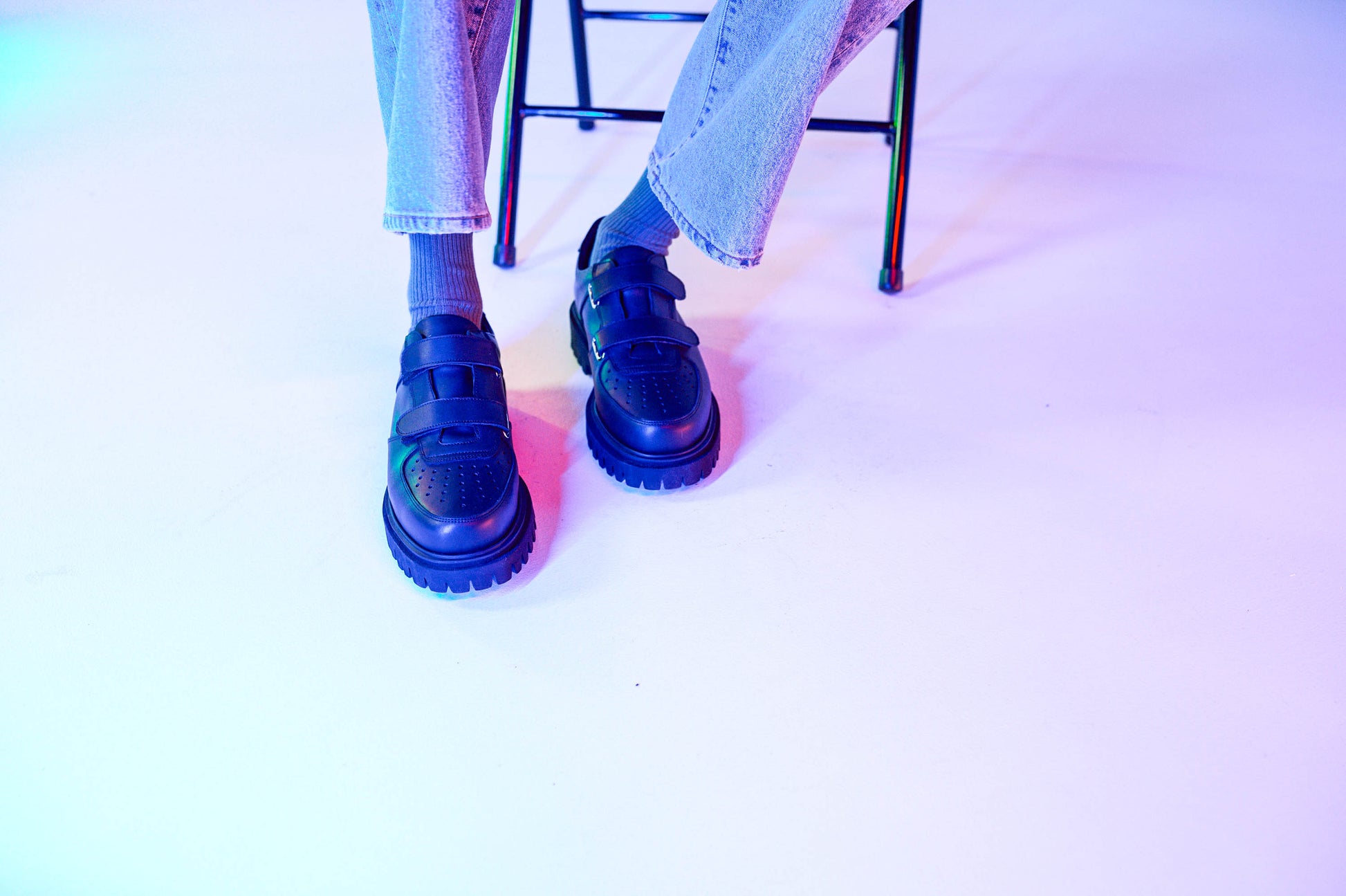着用画像では、左側のモデルが履いている靴になります。