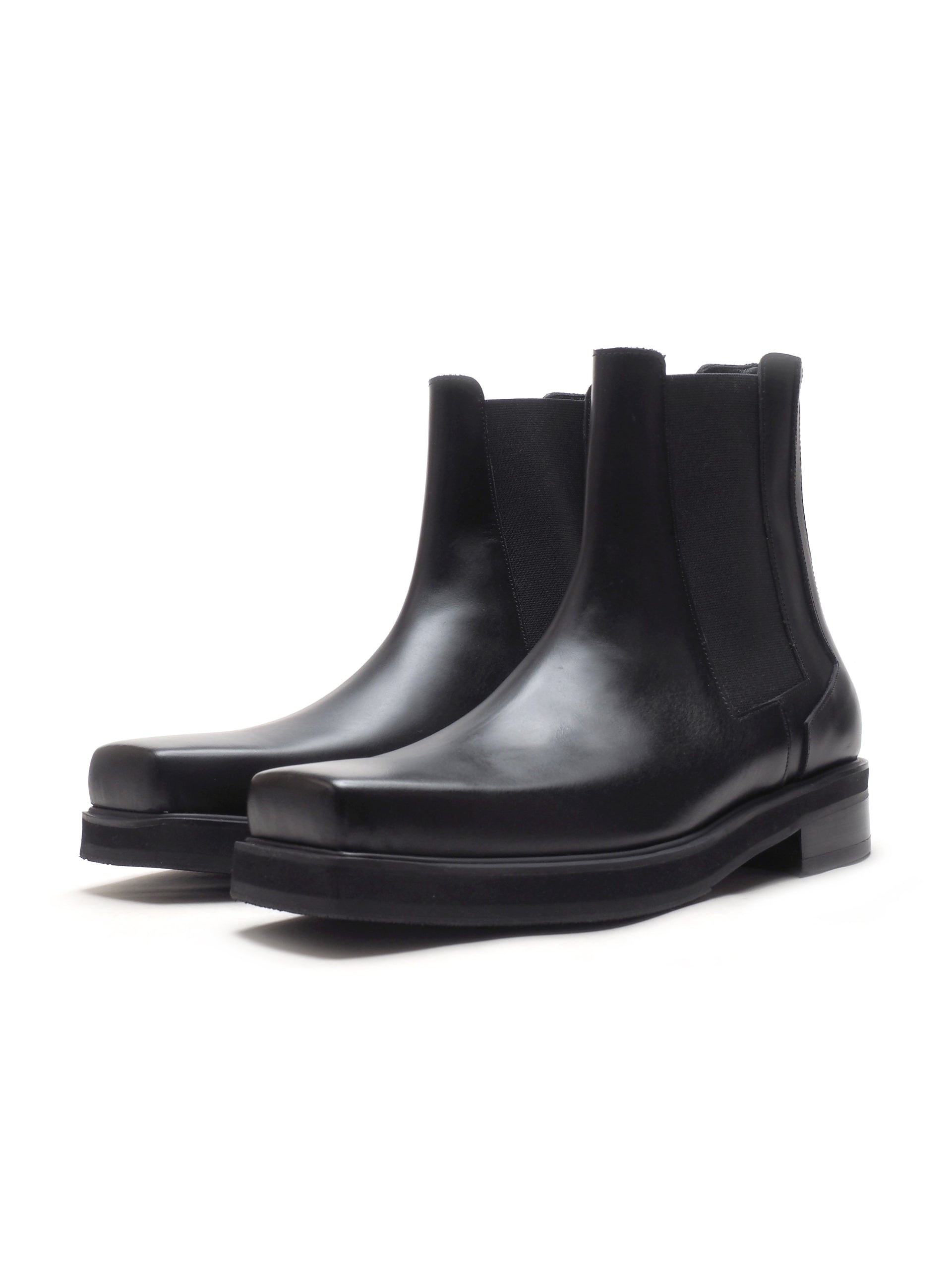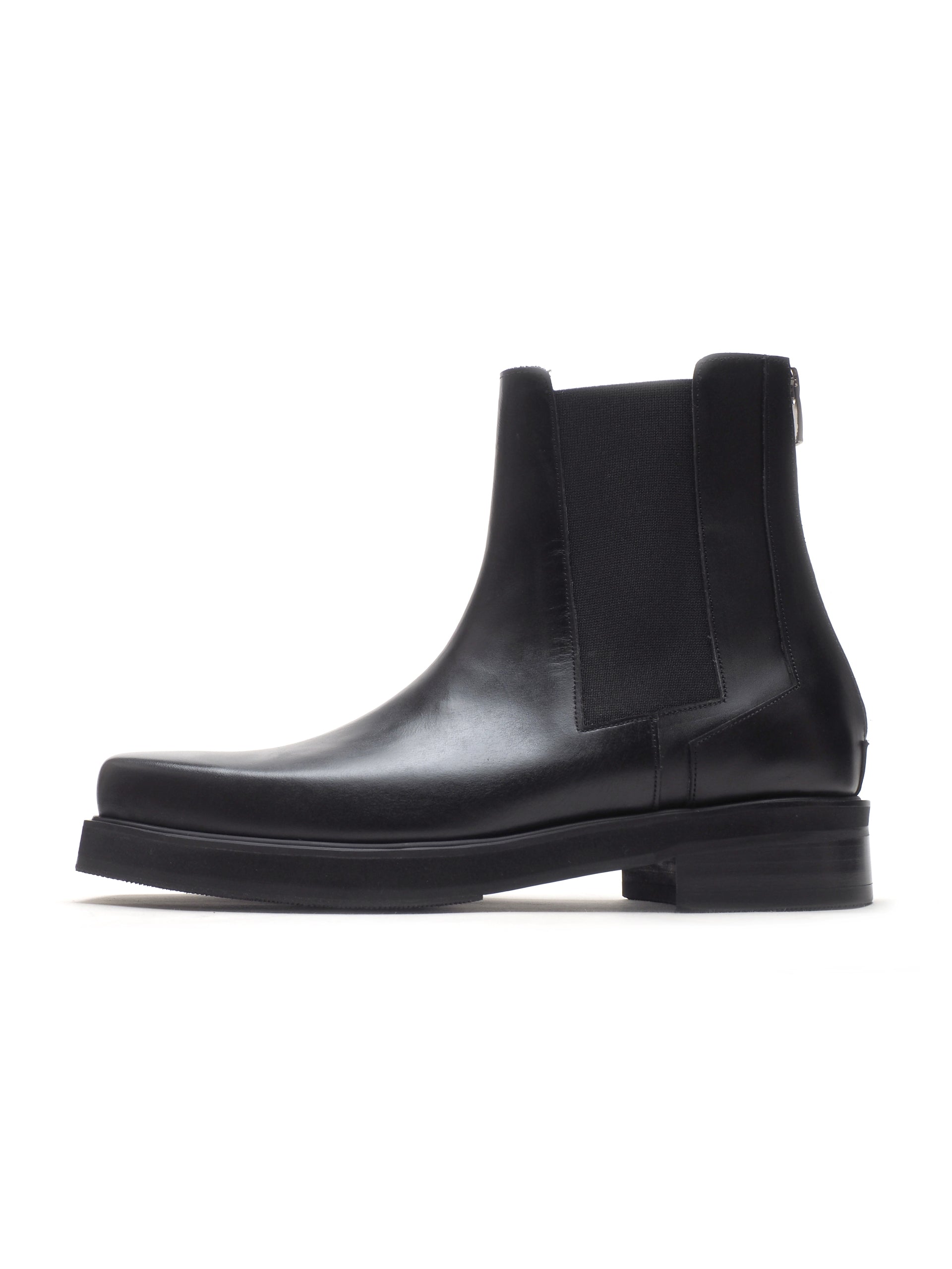 vibramアウトソールとマットな質感のblack marble leather使用
